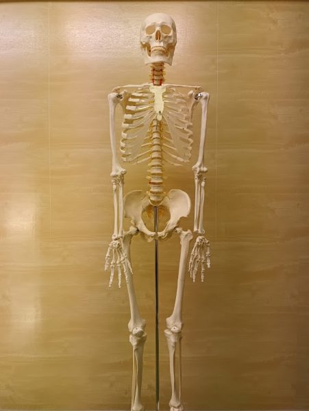 来ていただいた方々に、必要があれば骨模型を使って説明するためだけではなく、私自身の自己研鑽(新しい整体の手技などを習得、練習する際に模型があったほうがイメージしやすい)、ほぐし整体スクールもやっているので生徒さんにわかりやすく説明するため、私自身が常に緊張感を持って仕事できるように監督役に?!笑、 寂しいので?!笑