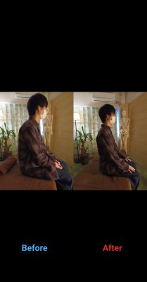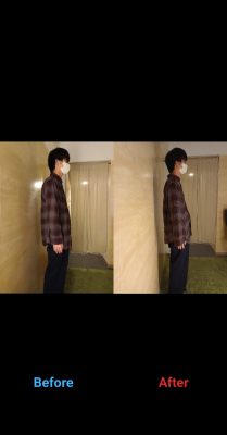 先日、猫背整体を受けていただいたお客さまの施術前と施術後の写真をシェアさせていただきたいと思います。(掲載の許可いただいております)